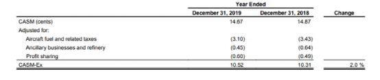 自2012年以來,航油價格從未如此之高。因此,我們還回顧了2012年的CASM分佈,這已經提供了一些前景。2012年,燃料和相關費用佔成本的35%以上。