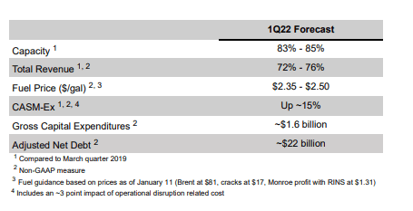 因此,這種激增是不好的,因為它基本上重置了對今年達美航空公司的預期。達美航空公司預計Q1燃油價格將在2.35-2.50美元之間。但很明顯,燃料價格一直在上漲,達美航空公司對今年頭兩個月的預測可能是準確的,但它們沒有反映出2月22日之后的任何情況。國際航空運輸協會的燃料價格監測顯示,燃料價格已經上漲到每加侖3.34美元,各地區有所不同。因此,燃料價格的飆升可能會使2022年成為虧損的一年,而不是航空業預期的穩健復甦。