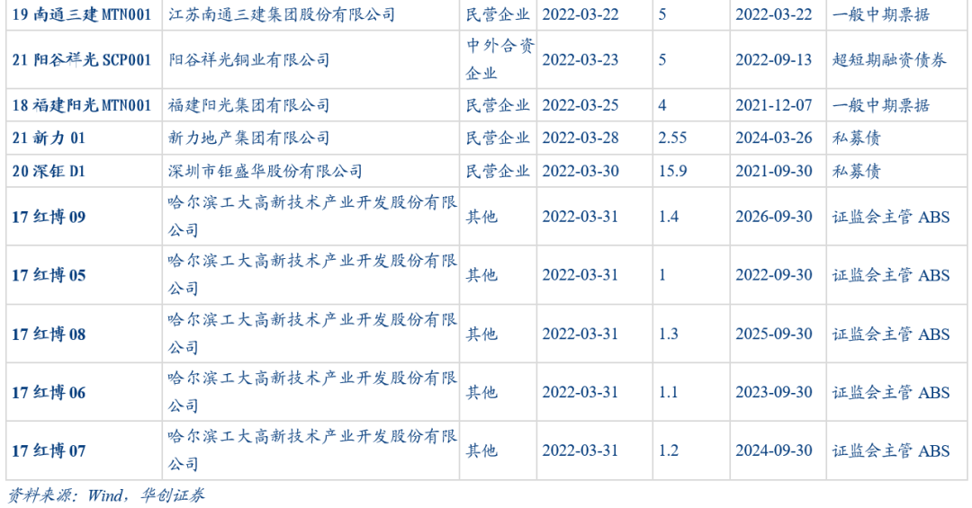 1-2月新增17支違約債券。2022年3月總計新增22只違約債券,其中新力地產私募債債首次違約后達成展期協議,企業性質為民營企業;工大高新為首次違約,企業性質為其他企業。本月違約債券中,包含4支私募債。
