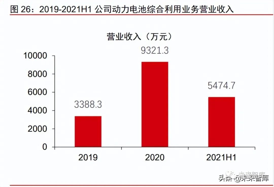 公司動力電池綜合利用業務盈利能力呈上升趨勢。2019-2020 年,公司動力電池綜合 利用業務盈利能力呈上升趨勢,營業收入分別為 3388/9321 萬元,佔公司總業收入的比重 有所上升,分別為 0.2%/0.8%,毛利率分別為 16.1%/20.0%。2021Q1-Q2,公司動力電 池綜合利用業務營業收入為 5475 萬元,比上年同期增加 75.9%,毛利率為 20.2%,比上 年同期增加 0.2 個百分點。