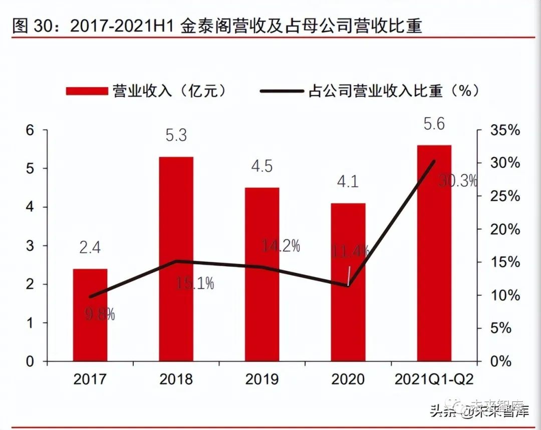 動力電池回收業務貢獻可期。2017-2021H1,子公司金泰閣營業收入佔天奇股份營業 收入比重分別為9.8%/15.1%/14.2%/11.4%/30.3%,系公司在動力電池領域持續推進技術 研發與創新、積極擴產所致。2018-2020 年,金泰閣歸母淨利潤整體呈上升趨勢,佔天奇 股份歸母淨利潤比重分別為 43.5%/51.4%/49.2%,保持在 43%以上的高水平;2021 年 Q1-Q2,金泰閣實現歸母淨利潤 0.77 億元,佔公司營收比重高增至 98.7%。金泰閣動力 電池回收業務有望持續驅動公司盈利能力增長。