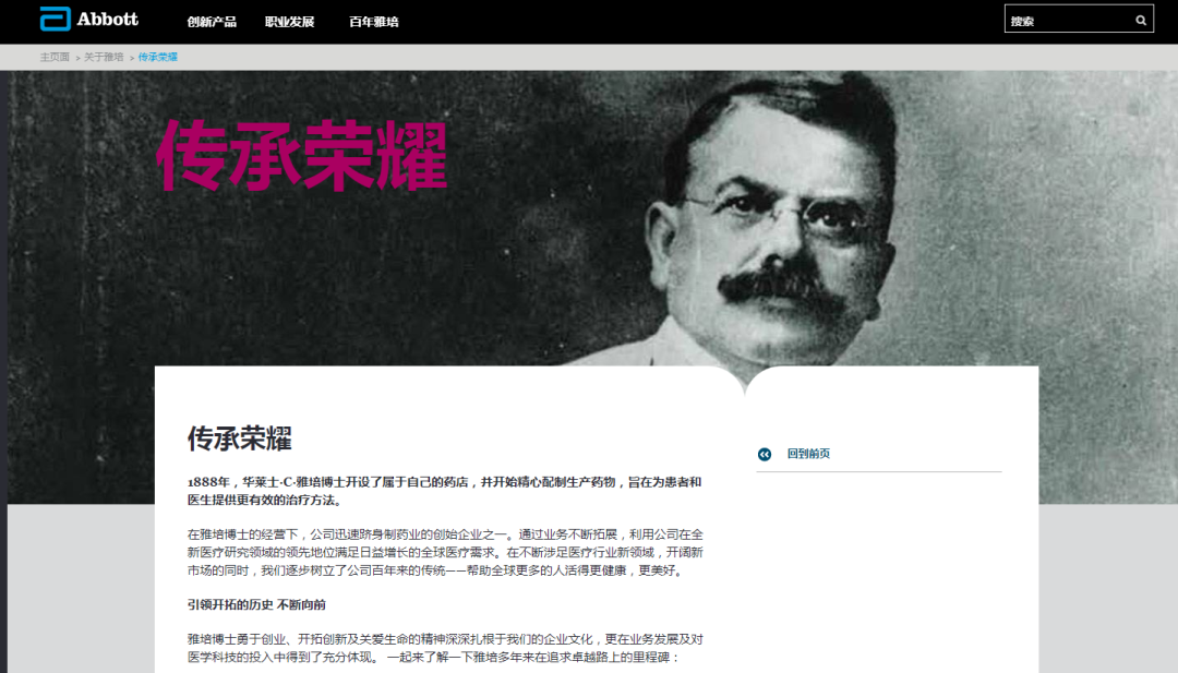 ▲雅培創辦於1888年 圖片來源:雅培官網截圖