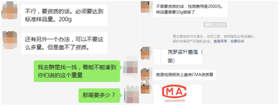 也有檢測人員向吳郁提出,「樣品量10g可以檢測,但無法出具檢測報告」。吳郁認為,這會讓檢測結果的合法性出現爭議。