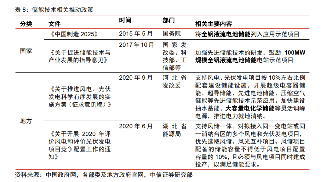 產業支持力度提高,配套政策實施。隨着可再生能源發電裝機量的提升,需要配套相關儲能設備。我國國家及地方均推出相關政策,將風光發電與儲能系統進行配套建設,推動可再生能源的儲能計劃實施。