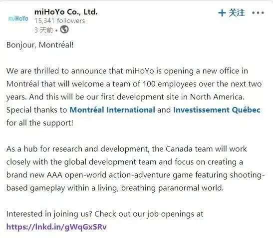 二次元頭部廠商米哈遊就對這一品類很感興趣。去年,米哈遊在領英平臺宣佈成立蒙特利爾工作室時,就提到他們將打造一個全新的開放世界射擊遊戲。在2019年的英偉達GTC大會上,黃仁勛也曾爆料米哈遊將會製作一款開放世界第三人稱射擊遊戲,並採用次時代卡通渲染。不過,這個項目目前還沒有公佈更多的信息。