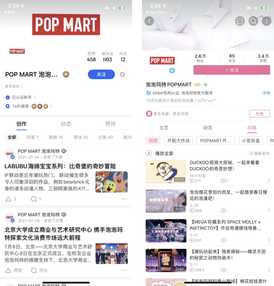 B站&知乎:這兩個平臺運營程度較低。B站目前粉絲數2.6萬,主要內容為產品介紹、用户共創內容為主;知乎僅有1100粉絲,已經9個月沒有運營。