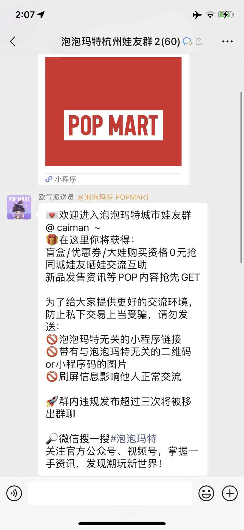 以官方運營的社羣為例。用户入羣后會第一時間觸發自動歡迎語。告知社羣的價值和羣規,並將用户引導至小程序。