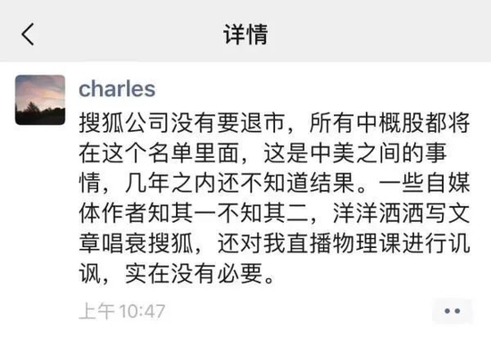 「搜狐公司沒有要退市」。