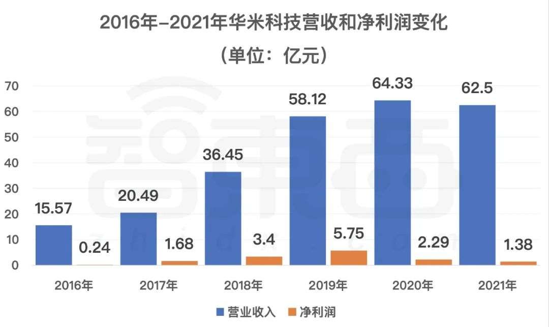 ▲2016-2021年華米科技營收和淨利潤變化