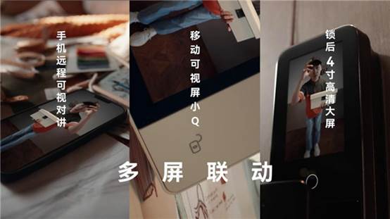 第一個,多屏互動。它自帶4寸高清室內屏,一鍵即可視頻查看門外動態,還能聯動德施曼發佈的另一個新品移動可視屏小Q。無論是在卧室、客廳、廚房還是家里其他地方,都能第一時間看到門口的情況。