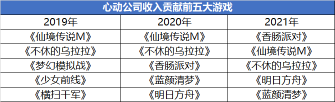 從收入貢獻來看,最近3年,心動公司收入前五的遊戲中除了《橫掃千軍》和《仙境傳説M》系自研,其余遊戲均是代理產品。