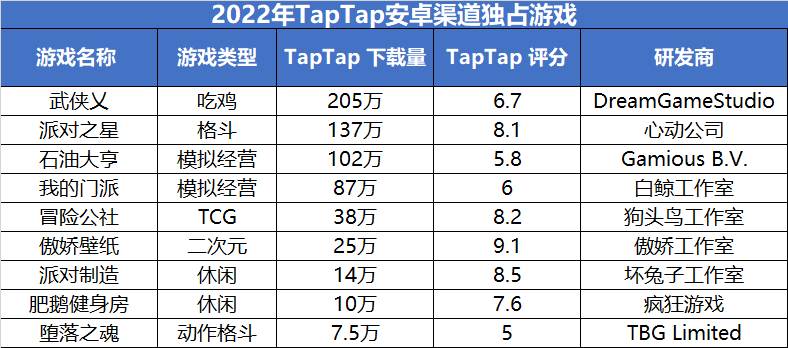 只有過往的平臺獨家遊戲表現優異,纔會有越來越多的遊戲廠商願意把安卓獨佔權交給TapTap。