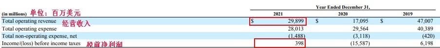 根據公司年報,達美去年營收為298.99億美元,同比增長75%,較2019年仍低36%;税前淨利潤為3.98億美元,較2020年淨虧損155.87億美元大幅回暖,較2019年低94%。