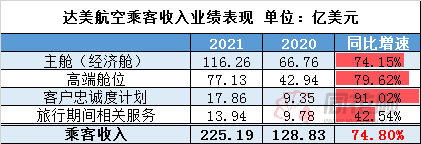 該部門去年營收為225.19億美元,同比增長74.8%。客座率為69%,低於2019年的86%,但較2020年55%有所好轉。