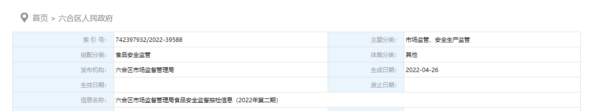 中國質量新聞網訊 2022年4月26日,南京市六合區市場監督管理局公佈食品安全監督抽檢信息(2022年第二期),1批次水果製品李果不合格。