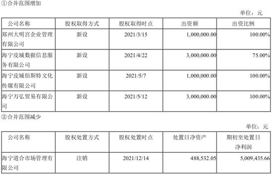 在2021年8月19日,皮革城投資公司以346萬元購買了其1%的股權,加上此前持有的40%股權,購買后持有41%,為控股股東,將其納入合併報表。民間融資中心是海寧市唯一一家民間融資服務企業,主要從事民間資金供需雙方的匹配業務,聲稱致力於緩解小微企業融資難和民間資金投資難兩難問題。