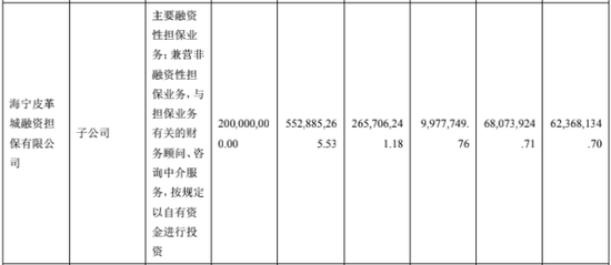 皮城擔保2021年營業收入為997萬元,淨利潤卻為6236萬元。海寧皮城賺的擔保費為942.45萬元。
