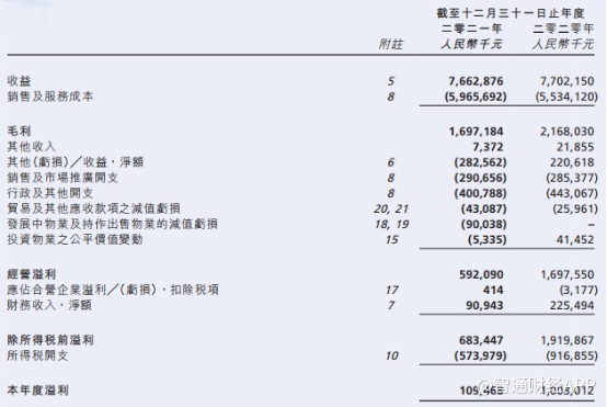 但就在2021年,天譽置業的業績卻出現了「大變臉」。公司發佈的2021財年年報中稱,公司在2021年實現營業收入76.63億元,同比下降0.51%;毛利潤為16.97億元,同比下降21.73%;歸屬母公司淨利潤同比止盈轉虧,淨虧損2.84億元,基本每股收益為-0.04元。