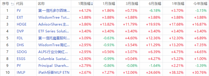 1、本周美股ETF漲幅榜
