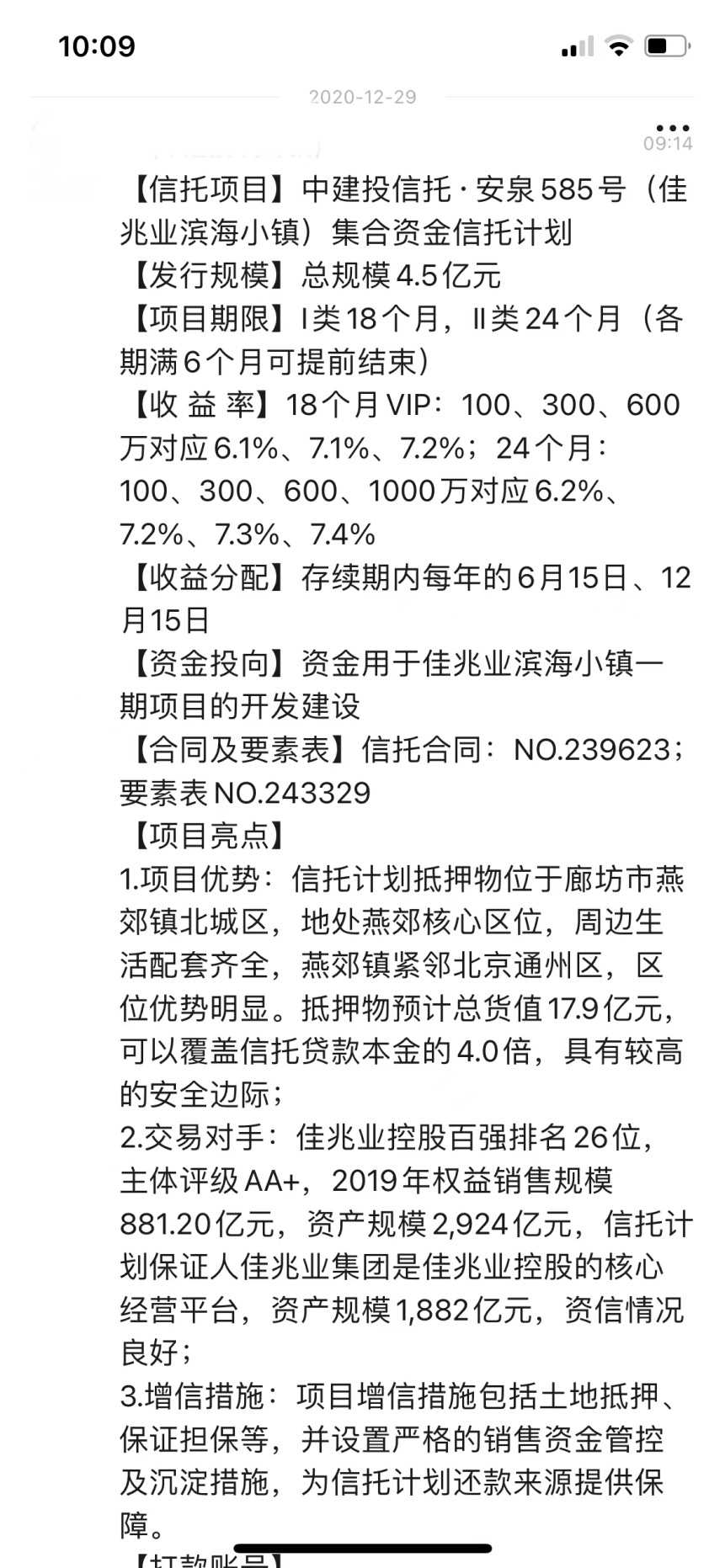 值得注意的是,記者獲悉,該信託計劃位於河北燕郊的抵押項目地塊因為規劃調整問題,尚未能取得工程規劃許可證和施工許可證,中建投信託仍在推進與佳兆業方面的溝通。