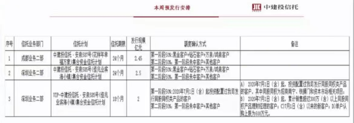 相關信披資料顯示,安泉585號總募集規模為4.497億元,對投資人半年付息,下一次付息時間為6月15日。此外,6月30日將是首期產品到期日,中建投信託稱,上述事項可能導致信託計劃存在無法按期、足額實現信託收益並收回信託本金的風險。