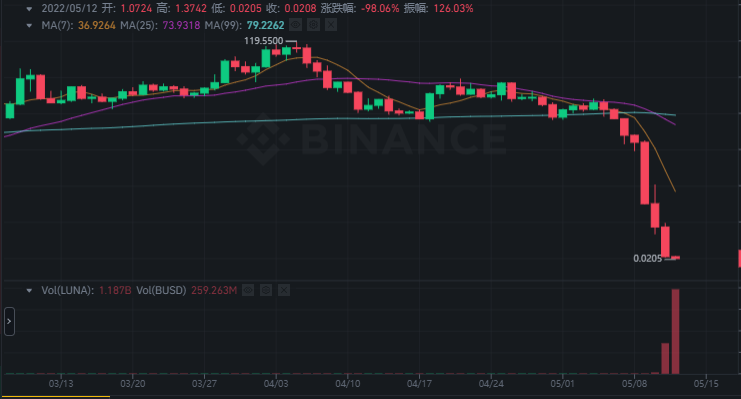 在過去的一段時間,「幣圈」正在經歷一場史詩級的超級暴跌。據Binance行情顯示,Luna幣在過去的一個多月時間從119.5美元跌至最低0.02美元附近,市值蒸發99.9%,但即便如此,依然沒有停止跌勢。