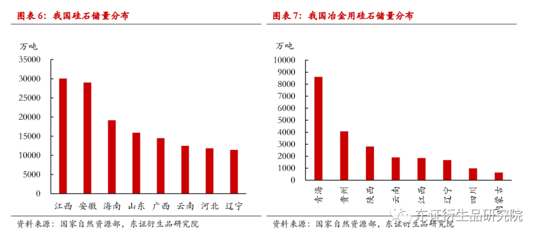 硅是地殼中含量僅次於氧的第二大元素,通常以化合物的形式廣泛存在於岩石、砂礫中,硅石是重要載體之一,其主要成分是SiO2。我國硅石資源豐富,分佈廣泛又相對集中,江西、安徽等地儲備較多。加之我國硅石開採加工的技術門檻不高,因此我國硅石的供應充足,基本能夠滿足國內生產需要。