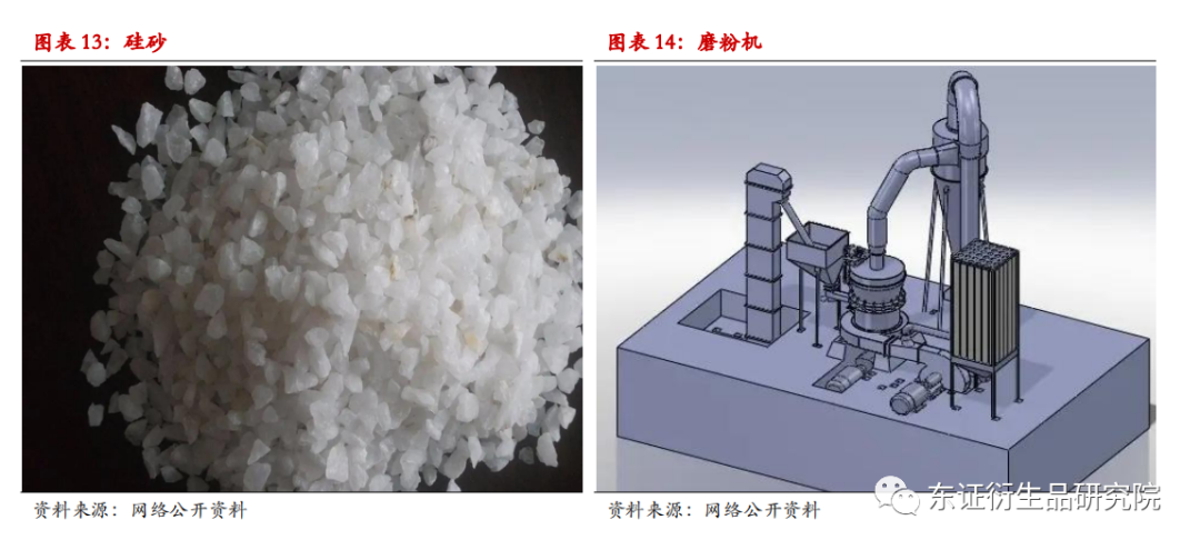 此外,目前部分國內硅石廠商同時進行開採和加工的工作,比如從事硅石採選及加工的當玻硅礦;也有大量加工廠商僅從事硅石的加工,其成本中佔主要部分的是加工過程中生產線設備的購置、檢修以及維護費用。常用的硅石加工流程包含破碎、篩分、磨礦、分選,所需設備分別為振動給料機、粗碎機、細碎機、磨粉機及輸送機等其他輔助生產設備,乾溼砂礦的加工可省略磨礦環節。經市場調研,實現100噸/小時的產出,加總后整套加工設備約需800萬,其中磨礦機成本佔比超50%。