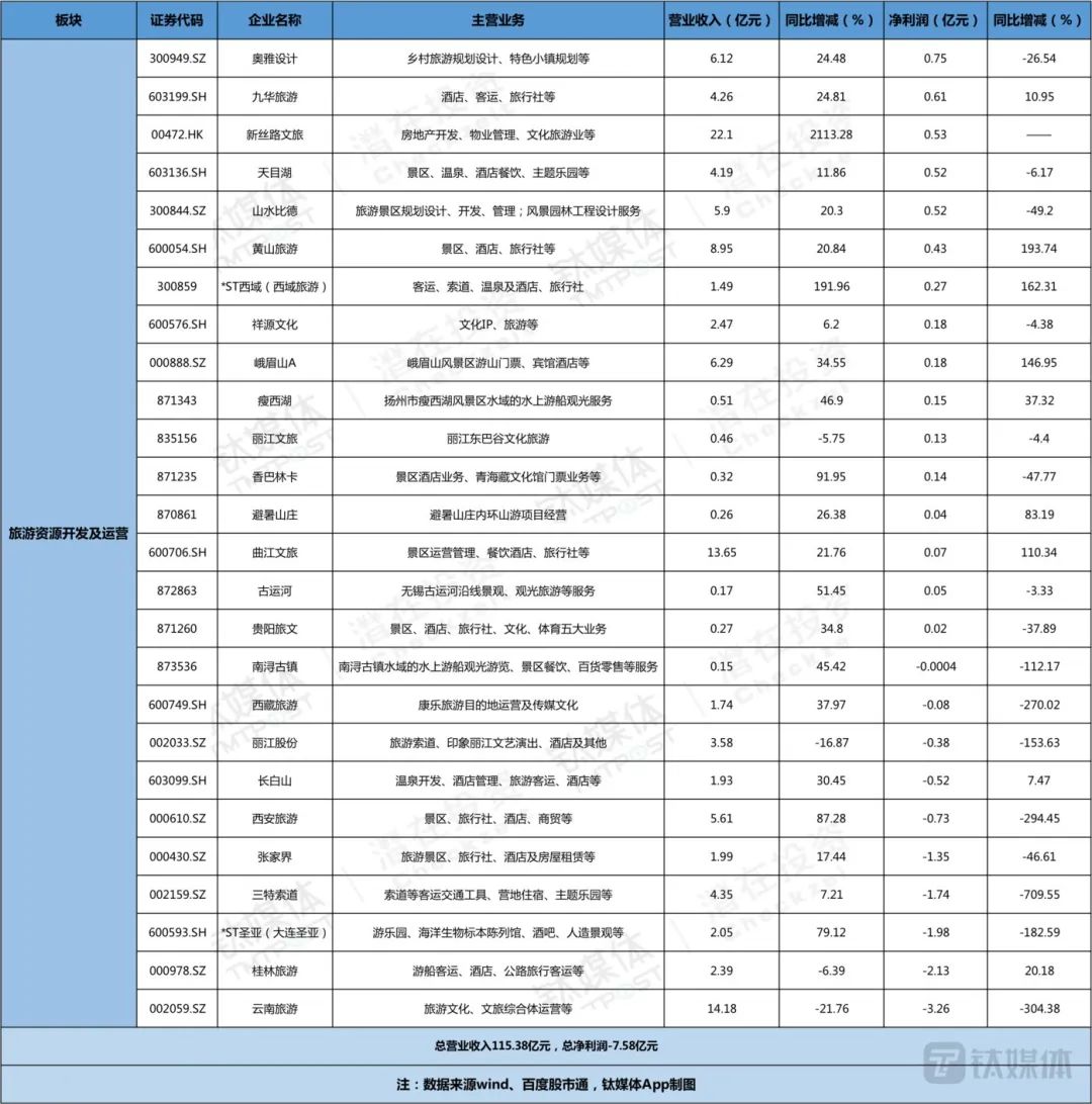 04、旅遊資源開發及運營板塊:整體營收達115.38億元,奧雅設計、九華旅遊、新絲路文旅分列盈利前三甲。