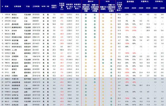 圖表7:在美上市中概股分行業估值與盈利情況梳理