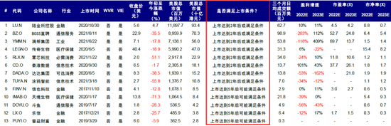 2) 上市達到5年即滿足條件:信也科技、天境生物等5家公司上市滿5年后,在假設市值和收入不變的情況下,即滿足回港二次上市的要求。