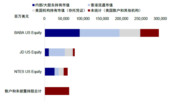 圖表26:前三大中概股散户和未披露持股規模可能約有630億美元