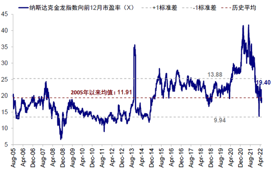 2021年高點以來,中概股整體持續下行並跑輸全球主要市場,進入2022年更是再遭重創。2022年3月,SEC將首批5家公司納入依據《外國公司問責法》的「初步識別名單」,引發市場恐慌性拋售。截至5月15日,共有100家中概股被列入這一名單;另有40只中概股公司轉入2021財年度的「確定識別名單」。經歷了2021年以來的大幅回調后,當前中概股市場整體估值已經跌至長期歷史均值一倍標準差以下的低位,但指數盈利預期依然處於下修通道。