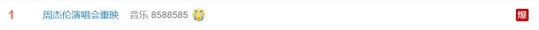20日晚8點10分,周杰倫演唱會重映開始10分鍾后,衝到熱搜榜第一。