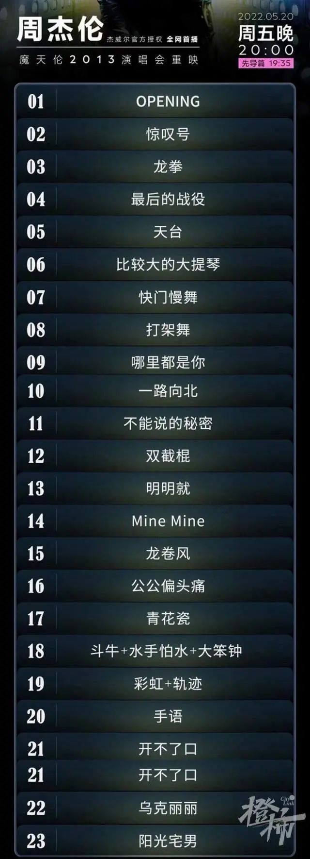 《最后的戰役》《龍拳》《一路向北 》《不能説的祕密》……根據節目單,這場演唱會,周杰倫總共為大家帶來23首歌。