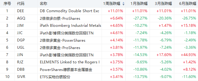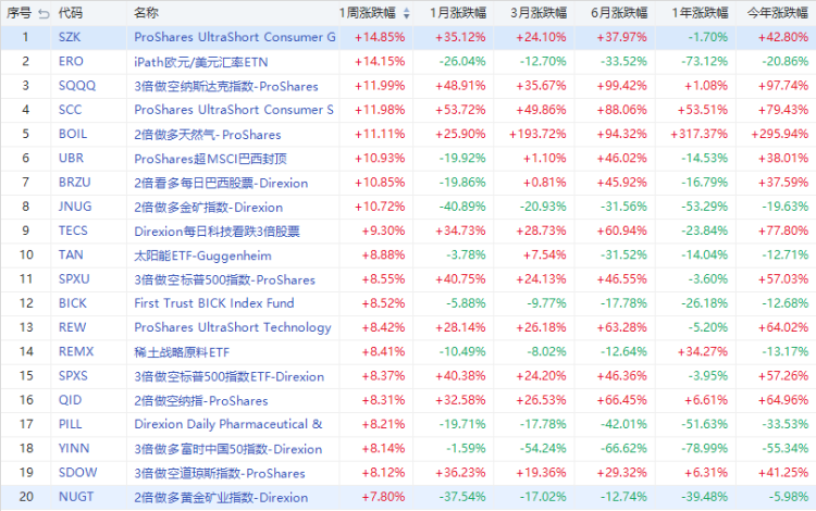 1、本周美股ETF漲幅榜:做空消費成最大贏家