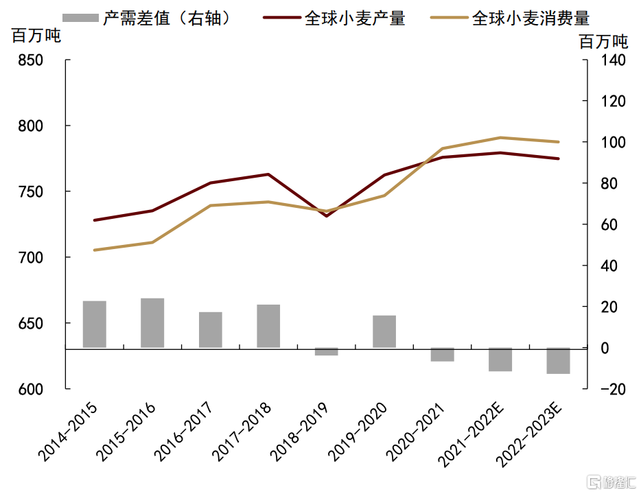 ► 印度不利天氣,或導致小麥產量有所下滑,加劇新作年度全球小麥供給擔憂。據USDA5月供需報告,全球2022/23年度小麥產量預計減少450萬噸至7.748億噸。具體來看,受俄烏衝突影響,2022/23年度烏克蘭小麥產量預計減少1150萬噸,為2150萬噸,降幅達到34.87%,帶動出口大幅下降47.37%,僅為1000萬噸。同時,北美極端天氣也令美國最大的硬紅冬小麥生產區堪薩斯州持續乾旱,小麥增產幅度有限。因此,新作年度,印度小麥出口對於平衡全球糧食供給,至關重要。但由於熱浪損害了北部主要種植邦的產量,USDA5月預計印度的小麥產量預計減少100萬噸,至1.085億噸。目前,印度小麥減產損失仍在評估中,我們預計產量或仍有下調空間,短期供給緊張情緒猶在。由於限制政策及時調整,供應溢價已逐步回落,但是我們認為,隨着印度減產的逐步兑現,未來國際小麥價格仍大概率受印度出口量調降影響,易漲難跌,基於北美小麥上市在即,印度小麥減產對價格的邊際影響或在±1.5-2%左右。