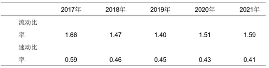 流動比率與速動比率衡量企業短期債務清償能力最常用的指標,該指標數值的降低代表短期償債能力的降低。從上表可以看出該公司2017年-2019年的資產的流動性比率以及速動比率逐年降低,2019年-2021年,流動性比例提升,速動比率仍然逐年下降,對於地產行業的特殊性其流動性本來就弱,因此結合速動比例進行分析,速動比例小於1表明佳源國際業短期內的可變現的速動資產不能覆蓋短期借款,2021年,地產行業的平均流動比率和速動比率分別為1.51和0.53,説明地產行業的整體現狀不佳,而佳源國際的速動比例數據均低於行業平均水平,其短期償債能力低於行業的平均水平,這表明佳源國際具有較低的短期償債能力。