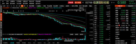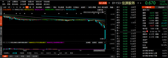 5月18日,股市再現閃崩個股,浙江房企龍頭之一,港股上市房企佳源國際及其關聯物管公司佳源服務雙雙暴跌,其中佳源服務開盤后1小時暴跌超過70%,報0.67港元。佳源國際控股盤中暴跌超過40%,報0.58港元,兩隻股票緊急停牌。