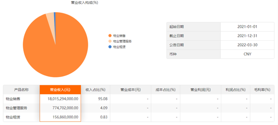 該公司的主營業務收入主要是物業的銷售收入,佔比95.08%,物業管理服務與物業租賃僅佔比4.92%。