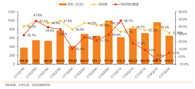毛利率:本季度為31.9%,比去年同期下降1.2個百分點;FY2022毛利同比增長至RMB3136.12億元,全年毛利率為36.8%,較去年同期下降4.5個百分點。
