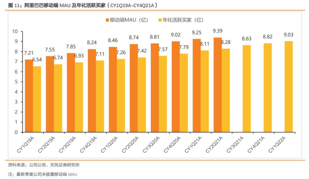 活躍買家數:中國零售市場年度活躍消費者達9.03億,同比增加8900萬,環比增加2100萬。
