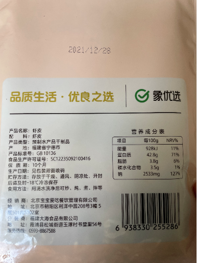 以美團買菜上一款食材蝦皮為例,寶寶愛吃為經銷商,而實際的生產、分裝則是福建大海食品有限公司,最終產品經由美團買菜平臺銷售。