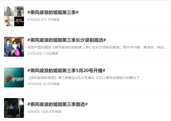 5月,《浪姐3》再次引爆全網。#寧靜那英打起來##寧那貝兒##鄭秀妍 二代團yyds##王心凌乘風破浪再唱愛你#等諸多「古早明星」名場面頻頻登上熱搜,引得觀眾們紛紛陷入回憶。據芒果TV節目戰報統計,《乘風破浪》連續兩周霸榜熱搜,其中包括日均98個全端熱搜,和15個微博熱搜。