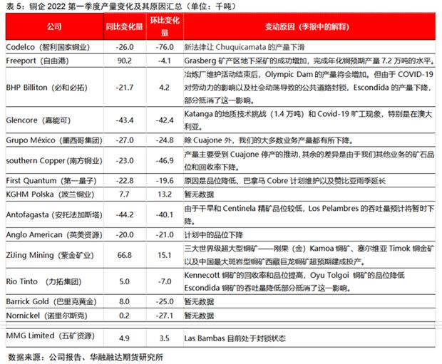 4.3銅企2022Q1產量變動的原因匯總