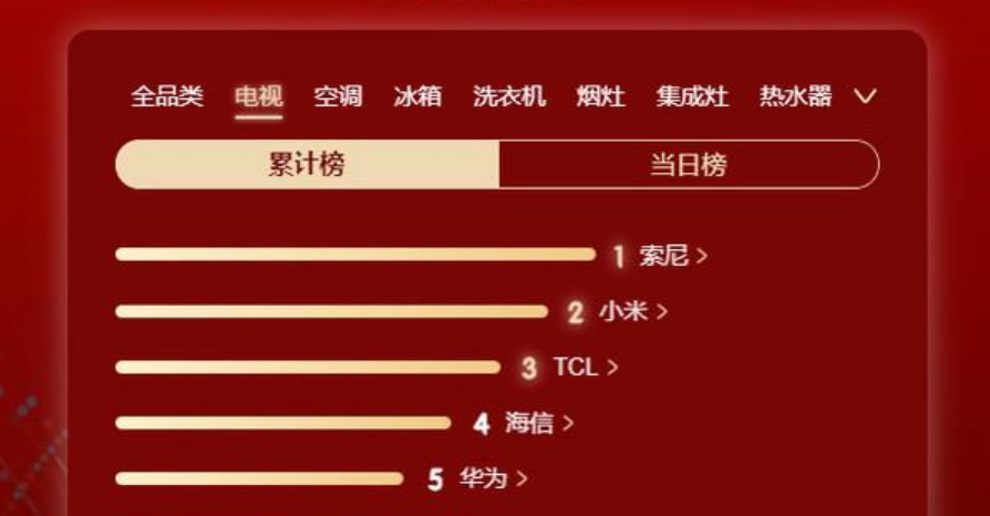 比如電視等家電類產品現在正在預售階段,索尼佔據累計榜冠軍的寶座,而小米未能拔得頭籌,只能屈居第二。據京東家電5月23日—5月29日預售戰報顯示,ROBOROCK石頭自清潔掃拖機器人、SONY索尼XR-75X9J遊戲電視、SIEMENS西門子610升變頻風冷無霜冰箱成為最受用户歡迎的趨勢單品,預售訂單額排名位列前三。