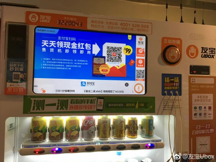 彼時友寶尚未接入支付寶、微信等第三方支付平臺,部分用户選擇在友寶錢包里存錢,用以購買自助售貨機上的商品。