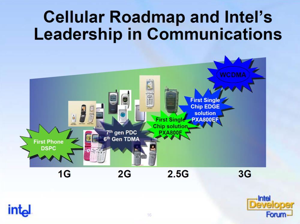 面向未來智能手機領域也已做足功課,早在 2003 年的 PXA800F 處理器上,英特爾就已經把計算、通信、存儲集成到了一塊芯片上。這在當時屬於行業首創,與我們今天的高集成度手機 SoC 頗為相似。
