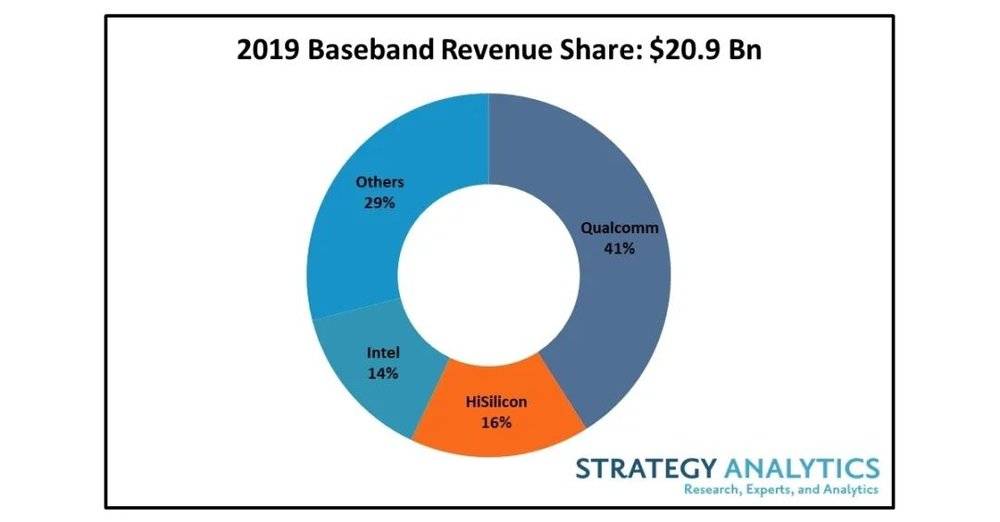 搭上蘋果的快車,英特爾基帶在 2019 年達到巔峰,市場份額達到 14%,躋身世界前三,僅次於高通與華為海思。