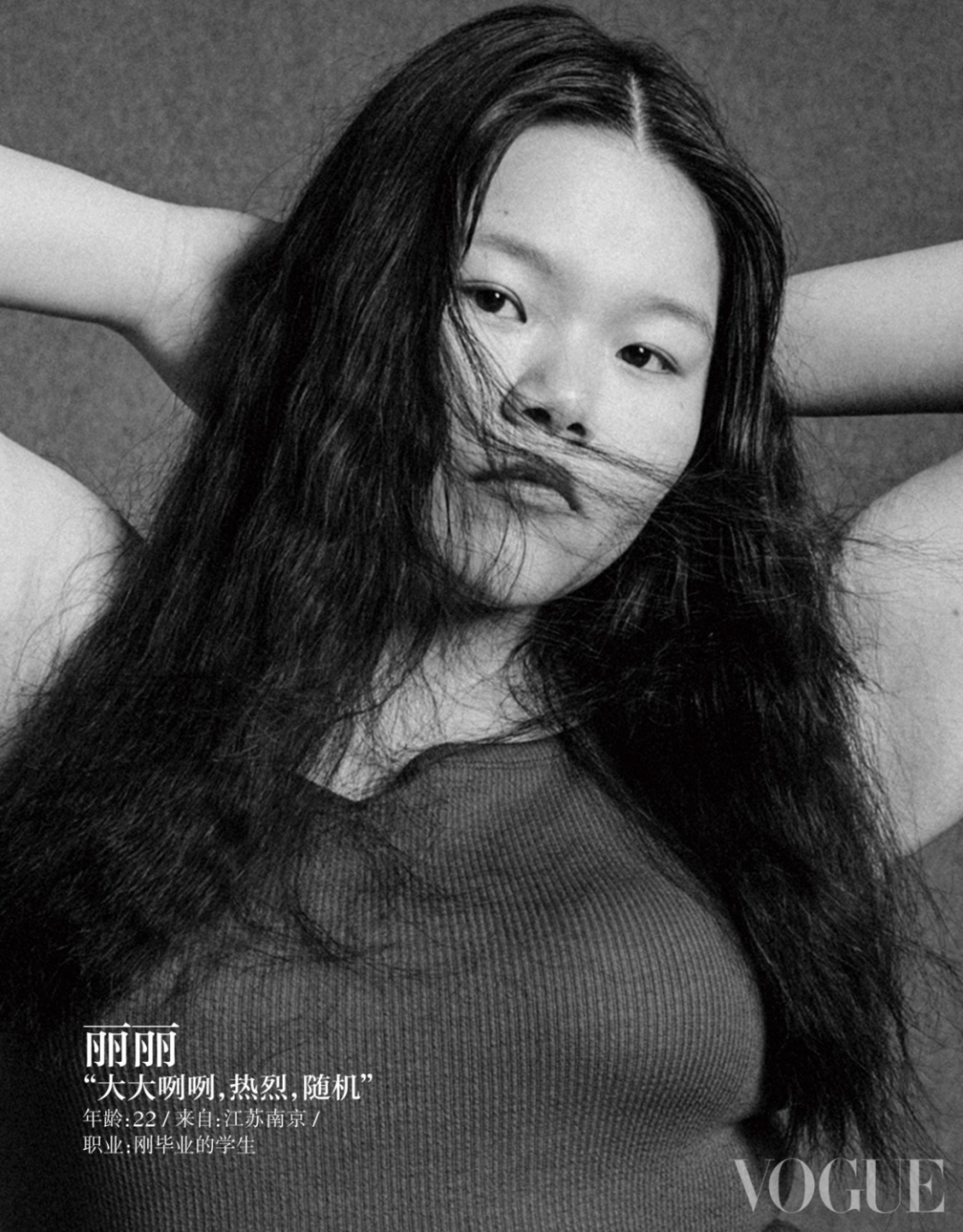最幸運的一次,是去年參與國內《VOGUE》9月刊中的拍攝。麗麗是15位Vogue新面孔中的一員,也是其中唯一一名大碼模特。